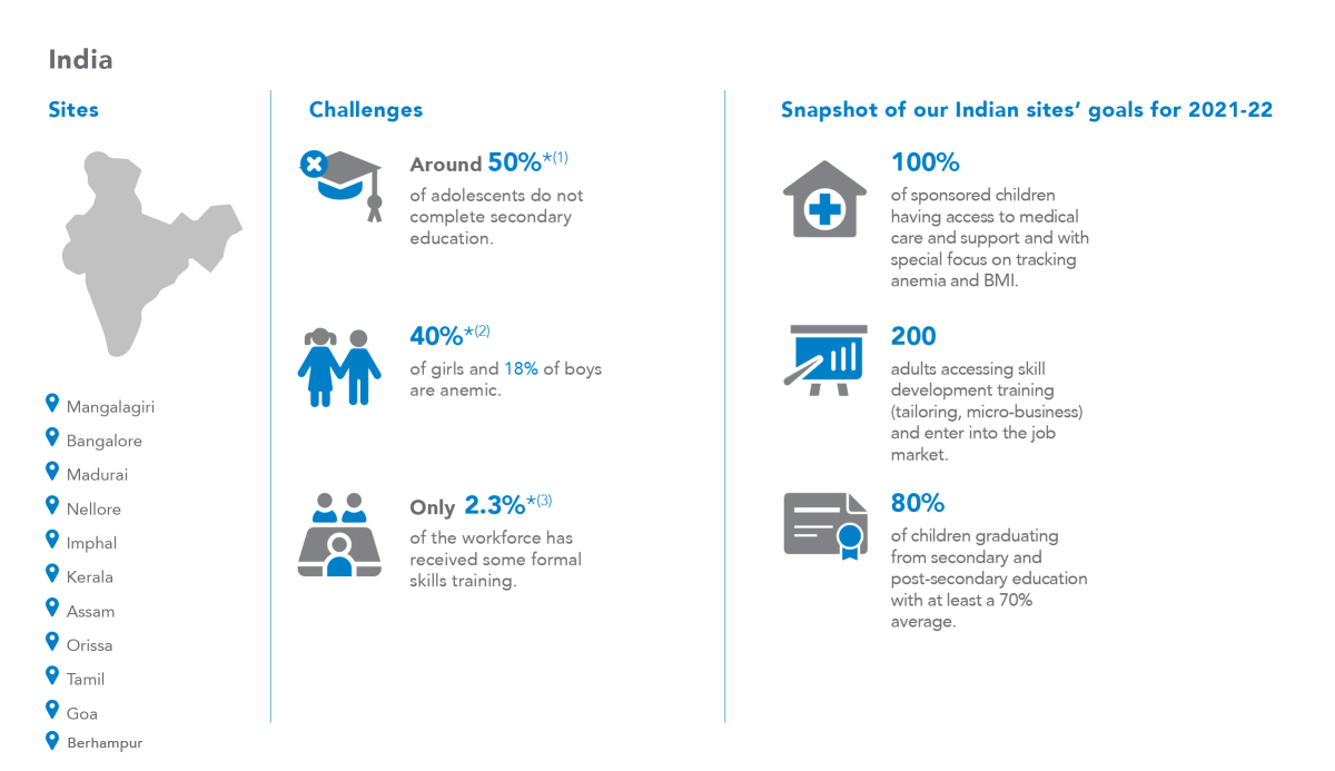 Many of the sponsored children and families are stigmatized due to caste and tribal affiliation, HIV status, and leprosy. Children with disabilities and refugees face discrimination and have poor access to basic public services. Our site partners ensure each child completes their education until high school graduation, at a minimum. They emphasize access to education to children living with stigma or physical health conditions.